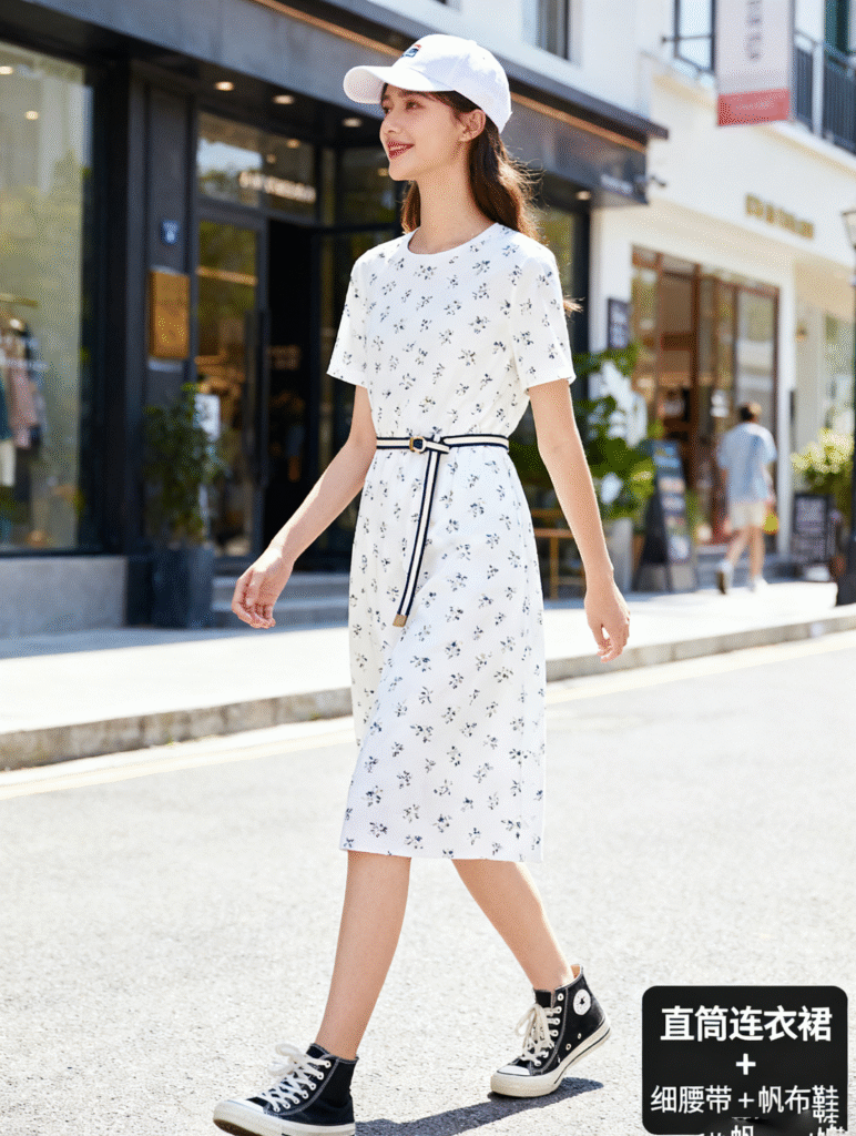 - Straight: Denim straight maxi + oversized t-shirt + sneakers.