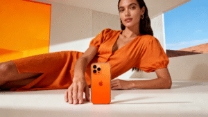 Solar Flare Orange iPhone 17 Pro : Pair with Desert Sun denim jackets, Poppy Red tops, or neutral basics (Steel Gray trousers, Wispy White tees) to let the phone shine.