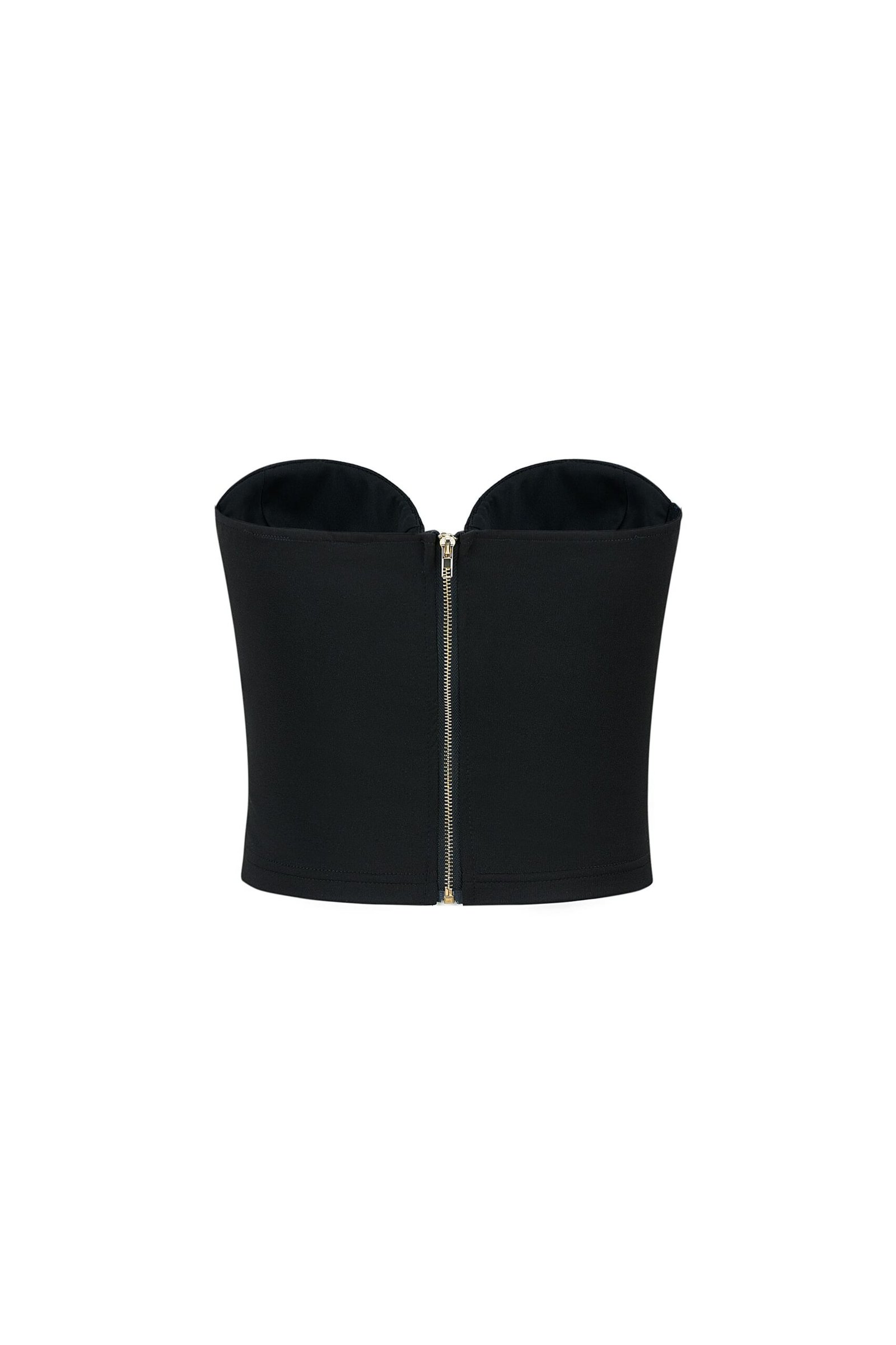 - Design: Strapless, structured with contouring seams.