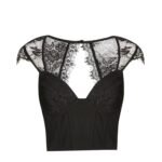 Step into sophistication with this lace elegance bustier. The delicate lace detailing on the shoulders and back creates an alluring design, while the structured fit provides support and an impeccable silhouette. The subtle cut-out offers a touch of intrigue, making it a perfect blend of elegance and modern style.