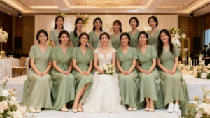 4. Sage Green Bridesmaid Dress: Trendy Wedding Attire